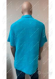 La giacca Thomas in Synth Blue coniuga lo stile rilassato da spiaggia con l'artigianalità italiana. Cotone biologico, lavorazione all'uncinetto rilassata, il tutto impreziosito da bottoni in madreperla e dal caratteristico ricamo geometrico Reticolo. Comfort naturale e dettagli d'impatto: uno stile estivo pensato per la velocità, secondo Lamborghini.