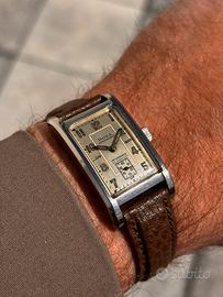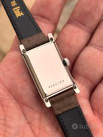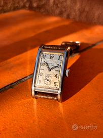 Cedo dalla mia collezione privata stupendo DOXA impermeabile tank art decó di fine anni 30’ animato da movimento a carica manuale. Cassa clamshell in acciaio misura 30,5x22,5mm corona esclusa . Quadrante immacolato di grande fascino. Modello unisex corredato di cinturino nuovo in pelle con impunture vintage. Funzionamento corretto, controllato di recente da esperto orologiaio. Preferibilmente consegna a mano in zona o spedizione a carico dell’acquirente. Pagamento con bonifico bancario o PayPal. Resto a disposizione per eventuali ed ulteriori info. Serietà.