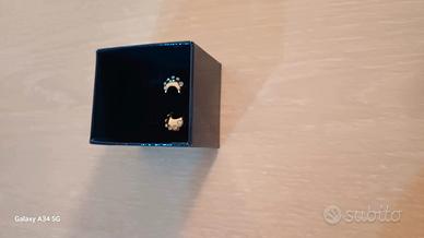 Forma mezzaluna 🌙. Peso totale comprese farfalline e pietre 1,20 grammo. Disponibile tutto come in foto, scatola, borsetta e fotocopia del certificato e granzia. consegna a mano padova zona mortise oppure a distanza.