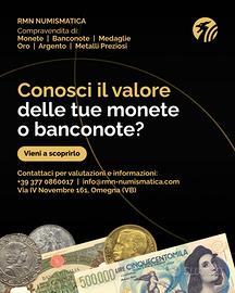 Cerco e Acquisto : MONETE - BANCONOTE - MEDAGLIE-COMPRO ORO e ARGENTO 💶 Pagamento in contanti 💵 ( nei termini di legge ) SI RICEVE SU APPUNTAMENTO! Disponibile per valutazioni e/o informazioni Valutazioni gratuite anche a domicilio Grazie buona giornata RMN Numismatica P.IVA 02772000036