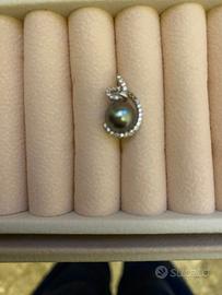 La protagonista è una perla australiana autentica (8,5 mm) acquistata personalmente a Bora Bora, successivamente montata su oro bianco e impreziosita da brillantini veri che ne esaltano la lucentezza naturale.