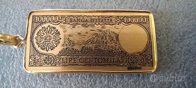 ciondolo banconota 100 mila lire anno 1983, peso 4,8 g. esemplare raro.