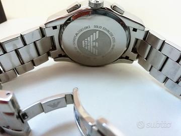 Orologio Armani originale in acciaio pieno da uomo. Movimento Quarzo. Bracciale con doppia chiusura. Rifiniture lucide. Compreso di tutto, scatola, porta orologio, libretto.