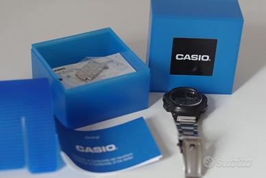Entrambi presentano un difetto, perciò venduti come 'da riparare'. Il primo (foto 1-2-3) è ottimo, ma ha perso la calotta in metallo del quadrante, infatti si vede solo la plastica nera; il cinturino è sempre Casio official, ma non è quello originale in gomma. Anche al secondo (foto 4-5-6) è stato sostituito il cinturino con uno compatibile non originale, perché quello in gomma era distrutto, però si è rotto il perno che teneva la staffa pieghevole collegata.