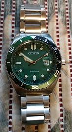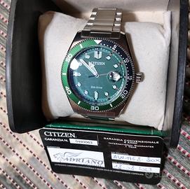 Orologi Citizen Eco-Drive AW1768-80X Marine Origine italia, genere uomo, movimento eco-drive, resistenza acqua 10 atm, vetro vetro minerale, diametro 43, marchio citizen, collezione marine, chiusura deployante, materiale cassa acciaio, condizione Ottime ( indossato 1 volta ), colore quadrante verde, dial color green, numeri senza numeri, materiale lunetta acciaio, calibro quarzo, funzioni orologio data, altre funzioni lancette luminescenti altre funzioni indici luminescenti completo di certificato di Origine Citizen . come in foto perfetto in ogni sua parte senza nessun difetto