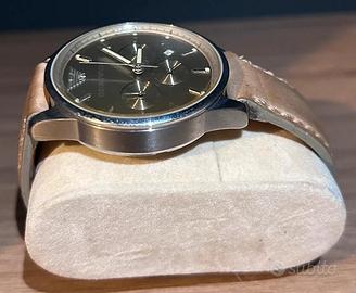 Emporio Armani Classic Chronograph con numero di modello AR2471. Fa parte della collezione Renato. Caratteristiche principali Movimento Quarzo (a batteria). Cronografo e datario. Materiale Cassa Acciaio inossidabile color argento. Diametro Cassa Generalmente 43 mm Quadrante Color beige/argento con finitura testurizzata e indici a bastone. Cinturino Vera pelle color marrone chiaro/taupe con chiusura a fibbia. Resistenza all'acqua: 3-5 ATM (adatto per l'uso quotidiano, non per il nuoto