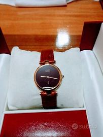 7)Cartier vermail arg.lam.oro 24 kt.quarz.mod grande quadrante onice bordo effettuata revisione totale con garanzia compl.della sua scatola orig.1.200€