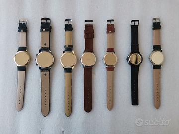 Orologi analogici da polso 7 pezzi. Acquistati per avviare una collezione non più seguita. Condizioni ottime, perfettamente funzionanti; su qualcuno ci sono piccoli segni, ma non dovuti all'utilizzo in quanto non sono mai stati indossati, sono stati esposti; scatole non presenti. Hanno la sola funzione dell'orario, mentre i cronografi sono presenti per estetica.