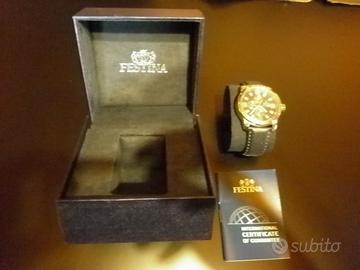 cronografo Festina nuovo mai usato cinturino in pelle forata...colore blu orologio sportivo/elegante