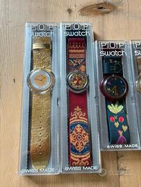 Orologi Pop Swatch da collezione, in ordine da sinistra Guinevere, Die Herzogin, Putti e Green Queen. Il modello Alice non è più disponibile.