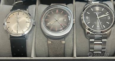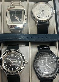 Metto in vendita, per sfoltimento della mia collezione personale, questi bellissimi orologi, tutti in perfetto stato e quasi tutti full set. Se interessati chiedetemi pure info e foto e video aggiuntivi prima dell’acquisto! CHRONO: >Eterna Kontiky Chronograph - quarzo - 200 mt -42mm - scatola + garanzia - €550 >Raymond Weil W1 Parsifal - quarzo - 37,5mm - scatola + garanzia - €300 > Hamilton Everest - quarzo - cassa asimmetrica- scatola - € 500 >Swatch X Omega Moonphase - quarzo - 41mm - scatola + busta + documentazione - €120 (chiedimi) VINTAGE: >Longines 8319-4 - meccanico - 35mm - €400 >Sicura UFO - meccanico - 37mm - €220 DIVER: >Vostok Anphibian - automatic - ghiera sostituita originale - 200 mt - 40mm - scatola + garanzia - €170 >Seiko Prospex Land Tortoise - 42 mm - automatic - scatola e card € 370 FIELD >Poljot Alarm 2612.1 - meccanic - 36mm - scatola + garanzia - €180 CHRONOMETER: >Tissot T-Tempo - automatic - 39mm- scatola + garanzia - €550 DAILY: >Certina DS Podium - automatic - 39mm - scatola - €350 > Timex Marlin Peanuts - Snoopy edition - 40 mm - automatic - full set - modello da collezione fuori produzione - € 300 Per ogni singolo orologio troverete, tra le mie inserzioni, un annuncio dedicato con una maggiore descrizione e piu foto: se interessati scrivetemi o fatemi un’offerta da li’ ! Abito a Torino, per cui la consegna potrà avvenire gratuitamente di persona ovvero con spedizione a carico dell’acquirente. I prezzi sono giusti e non trattabili. Per acquisti multipli applicherò volentieri uno sconto. Grazie Luca