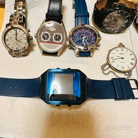 Automatico seiko anni 80 €.50-orologio automatico russo anni 90 €.80-orologio da taschino “frawerge”carica manuale anni 80 €.100-orient automatico anni 70 €.50-laurens crono al quarzo anni 2000 €.50-police al quarzo anni 2000 €.50-timex crono al quarzo anni 2000 €.80-fossil al quarzo anni 2005 €.50/60-guess digitale anni 2015€.50-vagary crono al quarzo anni 2000 €.50. Vendo in blocco ed anche singolarmente, tenuti bene alcuni indossati pochissimo , sono tutti privi di batteria quelli al quarzo