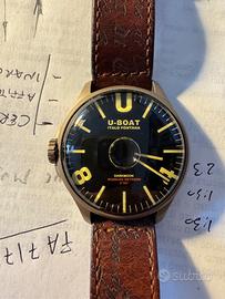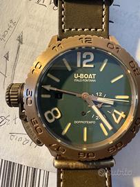 Orologi U-Boat: Flighdeck 55 mm, ottime condizioni, full set, 1200 euro; Doppio Tempo Bronzo 46 mm: perfettissimo, ma senza accessori, 1400 euro; Classico U-47 mm, full set, bronzo virato, molto particolare, 1200 euro; Darkmoon bronzo, 44 mm, full set, 800 euro; gli orologi sono, naturalmente, autentici ed in ottime condizioni, con il loro cinturino originale, oltre ad un altro a corredo. Possibile spedizione, ma meglio la consegna a mano.