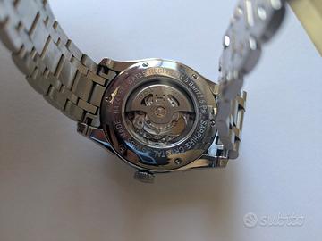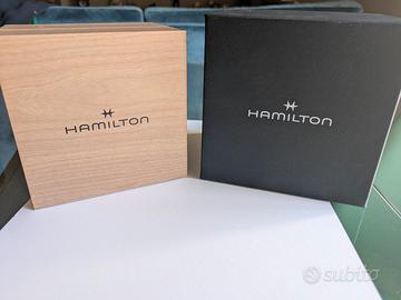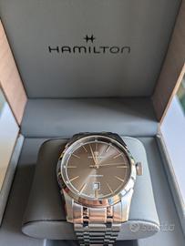 Orologio in ottime condizioni estetiche e funzionali. Presenta leggeri e normali segni di utilizzo (hairlines) sulle superfici lucide della lunetta e sul bracciale, visibili solo in controluce. Vetro zaffiro e quadrante perfetti, privi di graffi. L'orologio non è mai stato lucidato e mantiene i suoi spigoli originali. Corredo completo (Full Set) comprendente scatola originale e documenti. Acquistato ad Aprile 2025 presso la prestigiosa Orologeria Majer, l'orologio gode dell'estensione di garanzia '2+2': oltre ai 2 anni ufficiali Hamilton, sono presenti ulteriori 2 anni offerti dal rivenditore, per una copertura totale fino ad Aprile 2029. Movimento preciso e fondo a vista pulito