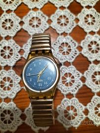 orologino Vintage Swacth, sfondo blu, con cinturino elastico. Da revisionare perché è un po' di tempo che non si usa