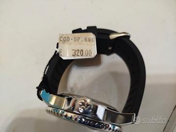 Orologio 3H automatico, impermeabile 500FT con cinturino in gomma nera e dettaglio rosso sulla ghiera.