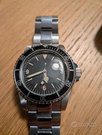 Bellissimo orologio stile vintage, completamente in acciaio in stile Rolex 5513, impermeabile 100 metri con movimento automatico e vetro/plastica. Cassa 39 mm con anse forate. Veramente molto bello in condizioni pari al nuovo, vendo per inutilizzo.
