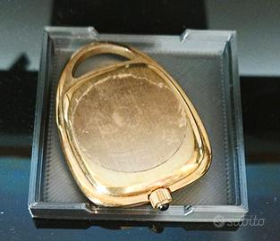 orologio vintage della Mondia, a pendente (o da collo), pensato per essere indossato con una catenina grazie all'asola superiore. Veniva spesso utilizzato come accessorio elegante femminile. La forma della cassa è definita è di tipo "tonneau", molto in voga negli anni '70.