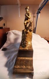 Orologio a pendolo da sopramobile manifattura fine 800 in bronzo dorato completo di chiave di ricarica e pendolo originale( vedi foto) .Il meccanismo orario funziona ; quello della suoneria deve essere sistemato. .Video disponibile a richiesta a mezzo WhatsUp. Pagamento via bonifico bancario o in contanti alla consegna . Contatti solo via Subito.it .No perditempo .
