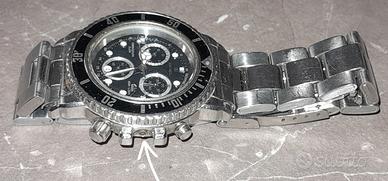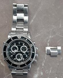 Vendo orologio da uomo in acciaio della BREIL Manta anni 90 cronografo, sveglia datario, resistente in acqua a 10 atmosfere da sistemare, non funziona. Diametro cm 4. Le caratteristiche sono impresse sulla cassa come da foto. Senza scatola, compresi il cuscinetto e una maglia del cinturino. Manca la ghiera per la sistemazione dell'ora come indicato in foto. Utile da pezzi di ricambio. La vendita è intesa come visto e piaciuto senza garanzia alcuna in quanto l'oggetto è usato.
