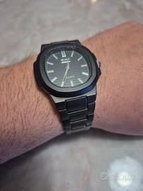 Vendo elegante orologio da polso con movimento al quarzo, caratterizzato da un design iconico e moderno. L'orologio è in colorazione Total Black (nero opaco), perfetto sia per un abbigliamento casual che per occasioni più formali.