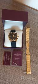 orologio accurist uomo in acciaio color oro con cinturino intercambiabile in gomma nero con custodia originale utilizzato pochissimo ottenuto bene