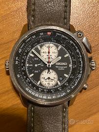 Orologio aeronautico con regolo calcolatore di volo, cronometro e allarme. Cinturino in plastica non originale, perfettamente funzionante ma batteria da sostituire.