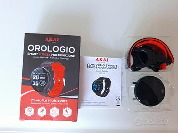 Vendo orologio smart fitness multifunzione AKAI K-FIT 300, modalità multisport, monitoraggio battito cardiaco e pressione sanguigna, pedometro, monitoraggio sonno, addominali, salto con la corda. Connessione allo smartphone compatibile con dispositivi Android e Ios. Prodotto originale. Mai usato, aperto per fare le foto e verificare che funzionasse.