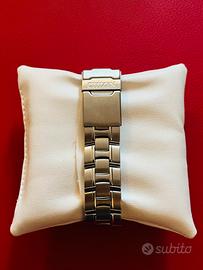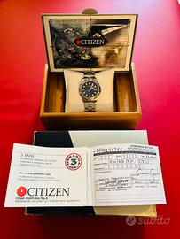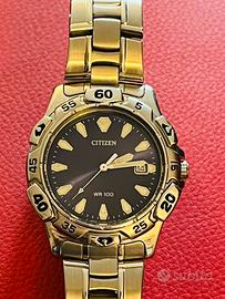 Vendo orologio al quarzo Citizen WR100. Braccialato come da foto, usato pochissime volte. Batteria nuova, appena sostituita. A corredo: Scatola esterna, scatola interna in legno entrambi originali Citizen e certificato di garanzia con timbro del rivenditore. Bracciale regolabile per polsi fino a 19 cm.