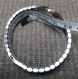 Vintage, prodotto nella seconda metà degli anni '80 Swiss Made Vetro zaffiro Cassa, fondello e bracciale in acciaio Corona originale Ha graffi leggeri, la corona è consumata sul bordo Le date 13, 14 e 15 sono sbiadite Movimento ETA 955.412 funzionante, tiene il tempo La corona permette di cambiare orario e data Batteria sostituita a dicembre 2025 Cassa circa 29 x 32 mm Spessore circa 7 mm Bracciale da circa 17 cm Se volete, valutate gli altri miei annunci