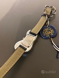 Orologio al quarzo in stile salvador dalì, Cinturino in pelle verniciata simil coccodrillo. Arriva nella sua dust bag origniale compelto di sigilli di garazia che ne dimostra il suo mai utilizzo in quanto nuovo