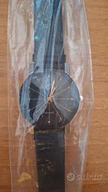 Orologio al quarzo unisex, colore nero. MAI usato, ancora con linguetta sigillante in plastica. Materiali plastica e metallo leggero