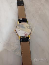 Orologio al quarzo con quadrante a tema Parigi con sfondo a righe verticali bianche e nere, contenete illustrazioni Torre Eiffel, scritta Paris e un cuore. Funzionante e batteria nuova.