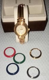 Orologio Aldex, con corone intercambiabili, in scatola originale . Dorato, centro bianco perla,con corone colorate .