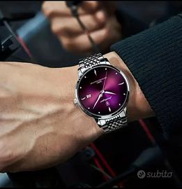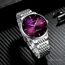 Orologio al Quarzo di Lusso POEDAGAR da Uomo- Quadrante Viola Elegante con Calendario, Lancette Luminose, Cinturino in Acciaio Inossidabile, Resistente all'Acqua 3ATM, Stile Business Casual, Orologio Business Casual | Orologio Moderno Elegante | Cassa in Lega Lucidata