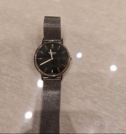 Quadrante: Nero minimale, senza lancetta dei secondi (solo ore e minuti), con indici a bastone argentati.