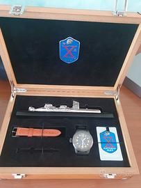 Orologio Raid Marin Flottiglia MAS – Edizione Speciale Vendo elegante orologio Raid Marin, ispirato alla storica Flottiglia MAS, dal design sportivo e deciso. 🔹 Caratteristiche principali: Movimento al quarzo preciso e affidabile Cassa robusta con incisioni commemorative Impermeabile fino a 200 metri Quadrante nero con indici luminescenti per ottima visibilità Cinturino in gomma resistente e confortevole Indicazione “Swiss Made” 🔹 Condizioni: L’orologio è in buone condizioni generali, con normali segni di utilizzo visibili (come da foto). Perfettamente funzionante. 🔹 Ideale per: Appassionati di orologi sportivi, collezionisti o chi cerca un accessorio distintivo e dal carattere militare. 💰 Prezzo: 800€ 📍 Consegna: da concordare Per ulteriori informazioni o foto, non esitare a contattarmi!
