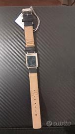 da polso con cassa quadrata e cinturino. - Cassa color argento. - Cinturino in tessuto nero.