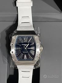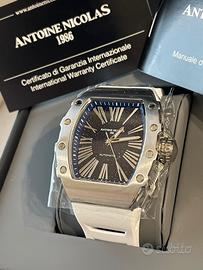 Orologio Nuovo della casa Antoine Nicolas 1986 modello DUBAI, con certificato di garanzia di 2 anni valido fino 04/2028. Orologio che racchiude l’essenza di Dubai: audace, raffinato, inarrestabile. La cassa in acciaio inossidabile 316L e il cinturino in silicone Biancorappresentano la perfetta fusione tra resistenza e leggerezza, mentre il movimento automatico MIYOTA garantisce precisione assoluta. Il vetro in zaffiro con trattamento antiriflesso protegge un quadrante dal design deciso, arricchito da dettagli luminosi che risplendono come le luci notturne della città. Cassa: Acciaio lucido Ø 41 mm, Quadrante Avventurina Bracciale: Silicone Bianco Movimento: Miyota Water Resistant: 5 ATM Spedizione tracciabile in 24/48h.