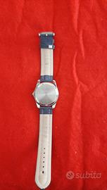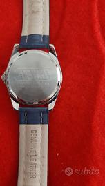 Orologio Acqua Master stainles steel backup, water resistant, misure quadrante larghezza 3,37 cm e lunghezza 4 cm. Cinturino blu in vera pelle. Mai indossato.