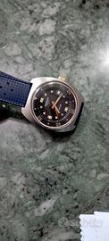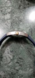 orologio aquastar geneve seatime, cassa in acciaio misura 39/40 mm. escluso corona, la corona di carica anche se originale e di colore oro, l'orologio si presenta con normali segni di utilizzo, comunque in buono stato, l'orologio funziona perfetto e preciso, cinturino abbinato non originale.