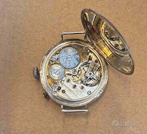 Orologio da polso da uomo, bivalve in argento massiccio. È un orologio trench davvero bello, un ARCADIA, casa svizzera rinomata all’epoca, con datazione probabile 1916/1917. Comunque Prima Guerra Mondiale.