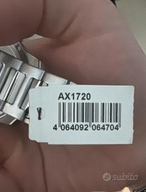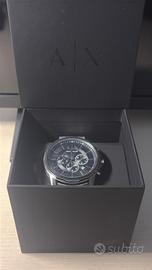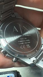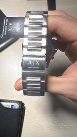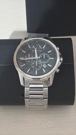 Orologio uomo Armani,Cassa da 44 mm, larghezza del cinturino di 22 mm, cristallo minerale, movimento al quarzo, display analogico con cronografo, importato Cassa rotonda in acciaio con quadrante nero Bracciale in acciaio color arGento Resistente all’acqua fino a 50 m: indossabile per nuotare in acque basse