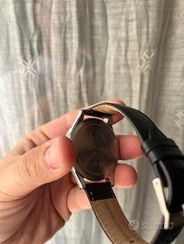 Orologio uomo cronografo al quarzo Armani Exchange della collezione Dante. Cassa in acciaio inossidabile silver con finitura satinata con dimensioni di 42 mm e spessore 8 mm. Cinturino in pelle nero, quadrante nero, vetro minerale e ha resistenza all'acqua pari a 5 atm.