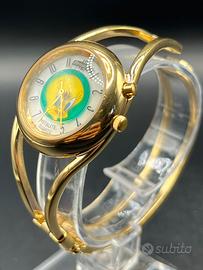 Splendido orologio vintage Armitron (Warner Bros) originale del 1995, modello da collezione con il personaggio di Titti (Tweety Bird). • Design Unico: Bracciale rigido a "bangle" dorato, elegante e particolare. • Funzione Instalite: Dotato di luce notturna (premendo il pulsante superiore). • Dettagli Tecnici: Fondello in acciaio inossidabile, movimento al quarzo giapponese (Japan Movt). • Condizioni: Ottime condizioni estetiche come da foto, metallo lucido e quadrante pulito. Un pezzo iconico dei Looney Tunes, perfetto per amanti del vintage 90s o collezionisti. Tag consigliati #TweetyBird #Titti #LooneyTunes #Armitron #VintageWatch #90sStyle #WarnerBros #OrologioVintage #CollectorsItem #BangleWatch #Y2KStyle