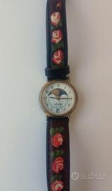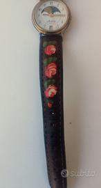 Vendo orologio donna Astra Quartz modello vintage anni 90 , originale funzionante carica batteria , quadrante in acciaio steinless e vetro Quartz sfondo bianco cinturino in pelle nera con grafiche floreali , ottime condizioni ben conservato come da foto , dimensione attacco cinturino chiusura cinturino 22cm spessore cinturino 2.3cm dimensione cassa inferiore a 30mm come da foto