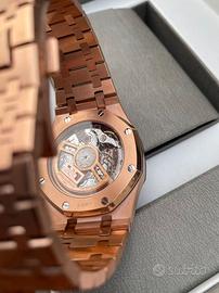 Vendo orologio Audemars Piguet, finitura oro rosa, con scatola originale. L'orologio è dotato di movimento meccanico automatico originale.