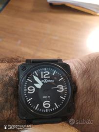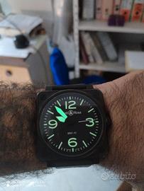 Bell & Ross colore nero modello br01-92,militare, 46 mm, normali microsegni da utilizzo sugli angoli, funzionamento macchina perfetto, controscatola e scatola originale deteriorata dal tempo, no documenti, con tutti gli accessori originali per cambiare cinturini, cinturino originale più 4 cinturini di ricambio 2 pelle 1 gomma 1 nato, astenersi perditempo, sognatori, e squattrinati, , costo nuovo 3.900€. Preferibile ritiro a mano