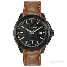 Orologio da uomo Trussardi Eta Swiss 🇨🇠40 mm , chiusura deplaiants cinturino in pelle . Movimento a vista fondo trasparente . Completo di scatola nuovo mai indossato