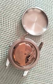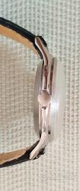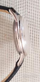 Exactus automatico bidynator da 17 Jewels Incabloc, un segnatempo svizzero d'epoca terribilmente vintage, probabilmente risalente agli anni '50 o '60. Bella e importante cassa da 38 mm esclusa la corona, il quadrante virato elegantemente dal tempo, presenta un particolare motivo a raggiera (sunburst), indici arabi e a bastone. È dotato di un datario a ore 3. Il movimento meccanico è protetto dal sistema Incabloc, progettato per resistere agli urti. Cinturino in pelle usato. Perfettamente funzionante e il datario scatta bene alle 24. Le foto fanno parte della descrizione visto e piaciuto!